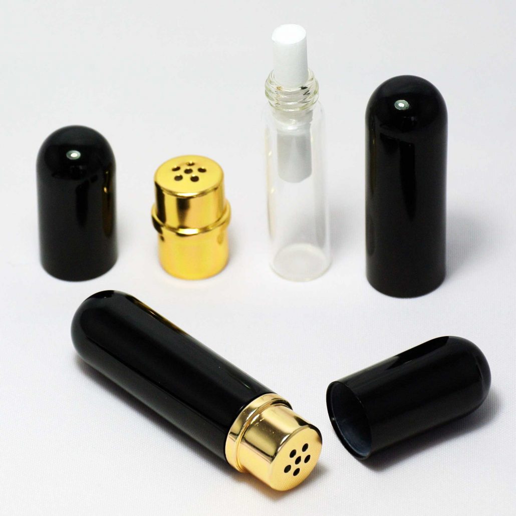Glas Aluminium Inhalierstift in der Farbe Schwarz zum selbst befüllen mit ihrem Lieblingsduft. Ein Wattestift liegt mit dabei.